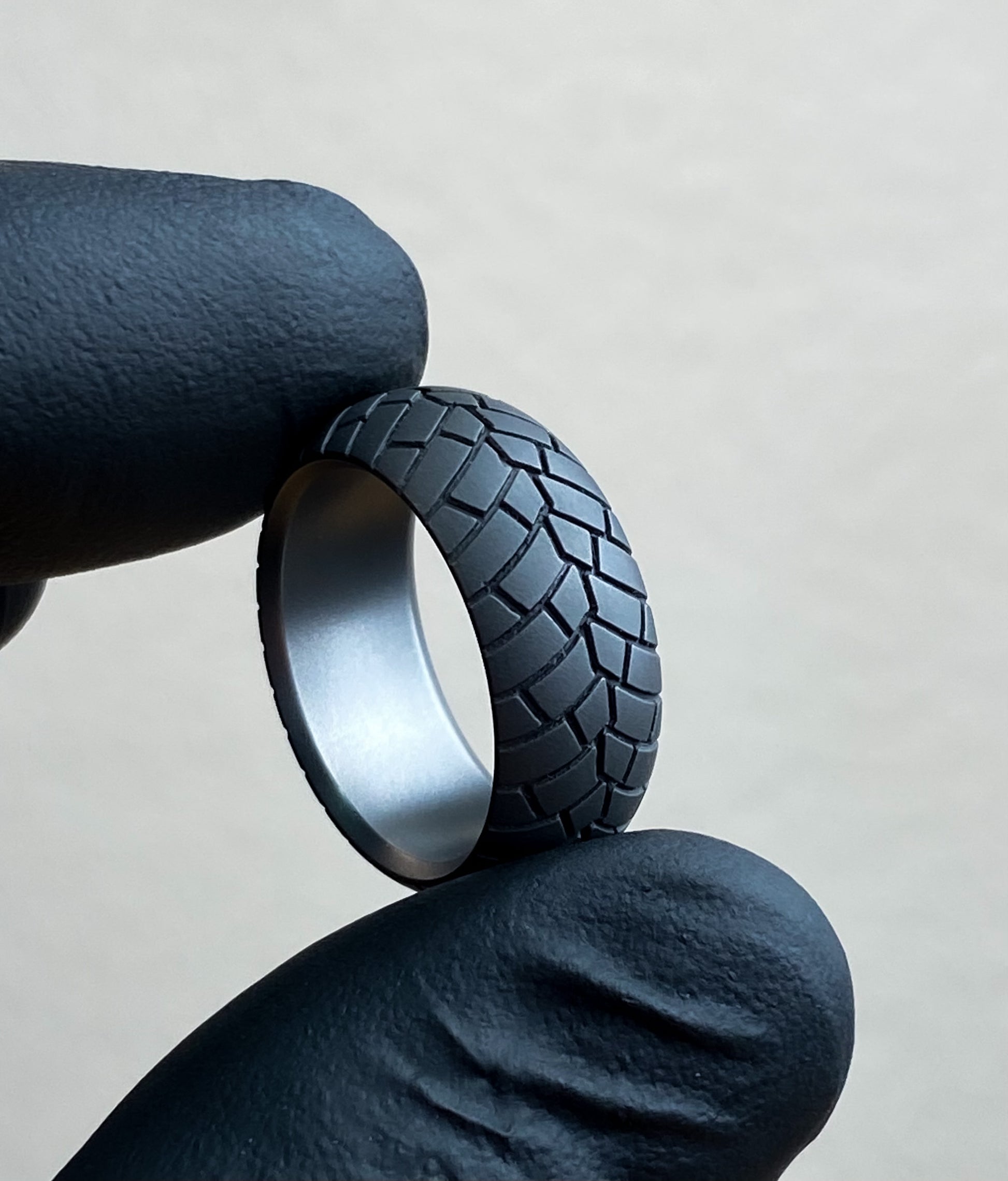 The silver ring has a silvery white color. Can be plated with black rhodium as an option.